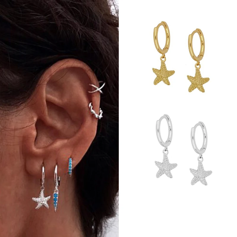 【Тип товара 】:Круглые серьги-кольца с подвеской в виде морской звезды