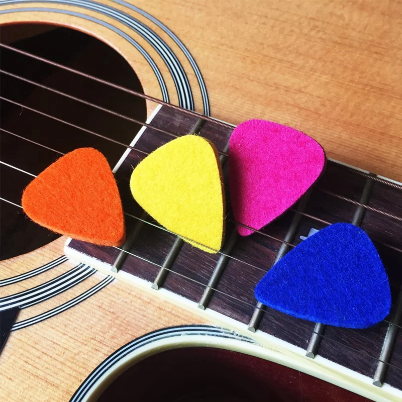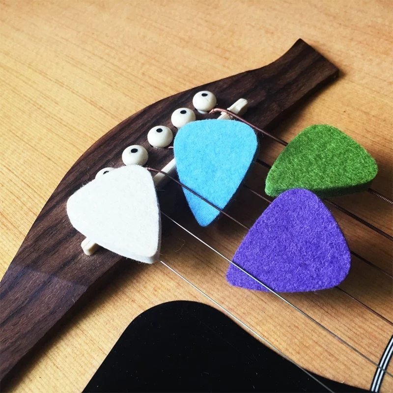 Гитарные медиаторы: Эти войлочные медиаторы изготовлены из шерстяного войлока. При попадании струн не издают ударный звук, так как пластик и металл выбираются. Они подходят для гитарных струн.