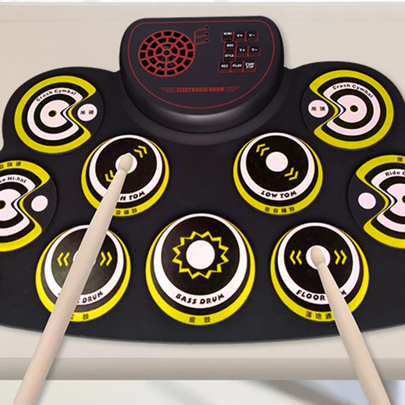 Больше удовольствия от барабанного набора: настройки на нем фантастические, давая все виды различных звуков барабана, чтобы играть. Они сворачиваются, когда не используются. Имея кнопку для управления скоростью RHY и DEMO, выберите диффузные барабаны, Управляйте громкостью. Маленькие подушечки очень чувствительны к давлению пальцами или палками, Поэтому необходим только светильник, чтобы воспроизводить потрясающий звук.