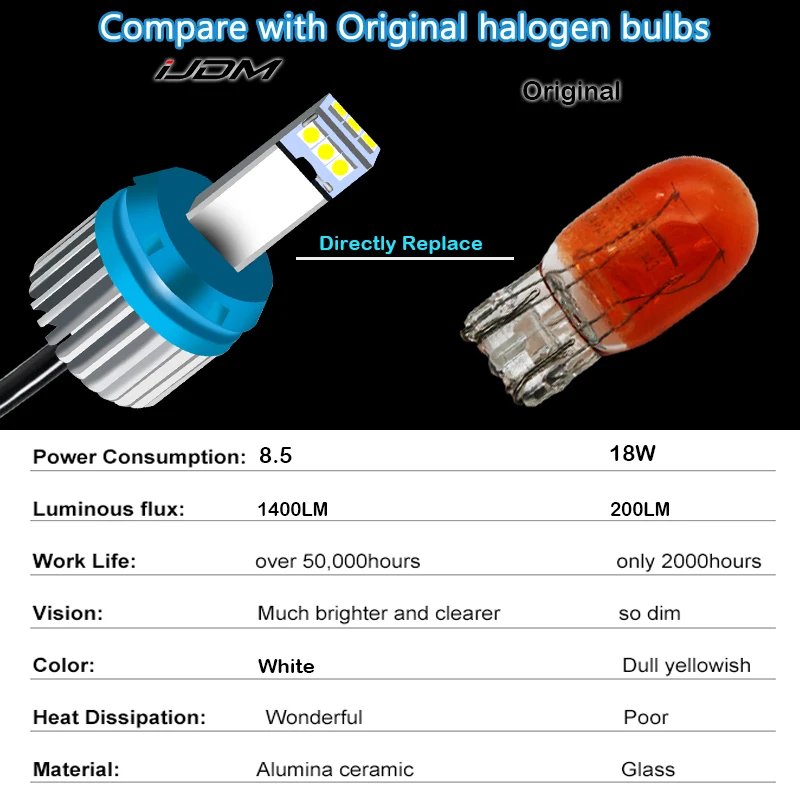 Новый пренний дизайн без вентилятора радиатора и основания для придания вам большей гибкости для легкой установки светодиодный Ной лампы Питание от светодиодных излучателей высокой мощности с потрясающей выходной мощностью 1400 Специально разработанная форма с идеальной точностью для придания светодиодный Ной лампе оптимального рисунка луча Спецификация светодиодный Дов: 9 штук 1,5 Вт, питание от 3030 светодиодный ных чипов/3SMD-3030 CAN-bus безошибочный дизайн (работает с большинством европейских автомобилей без предупреждающих сообщений на приборной панели, без мерцания/без освещения) Рабочая мощность: полная 9 Вт Напряжение: 12 В x 0,75 A = 9 Вт Угол свечения: 360 ° Срок службы: 50000 рабочих часов Конструкция высокой мощности и исключительно предназначена для резервного заднего хода/дневного ходового огня