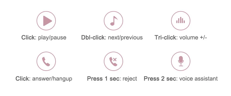 Все операции в двух режимах воспроизведения музыки и вызова могут работать одной кнопкой касания.