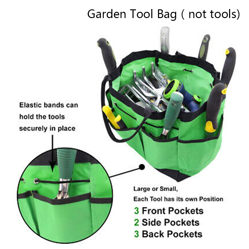 * Прочная садовая сумка с несколькими карманами может надежно удерживать инструменты на месте, а карманы достаточно глубокие, чтобы избежать выпадения инструментов. Внешние карманы для легкого доступа к инструменту.