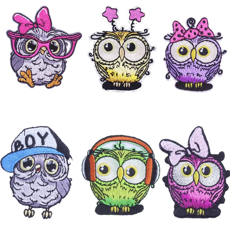 Милые совы комбинации патч, вышитые патчи для Diy Одежда Аппликации Наклейки на мультфильм t_рубашка значки одежда