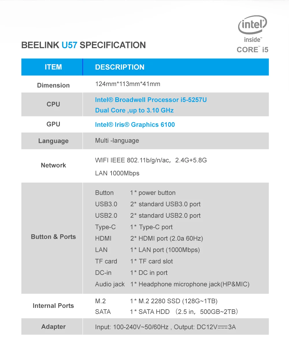 ● Intel CoreI5-5257UПроцессор, двухъядерный процессор