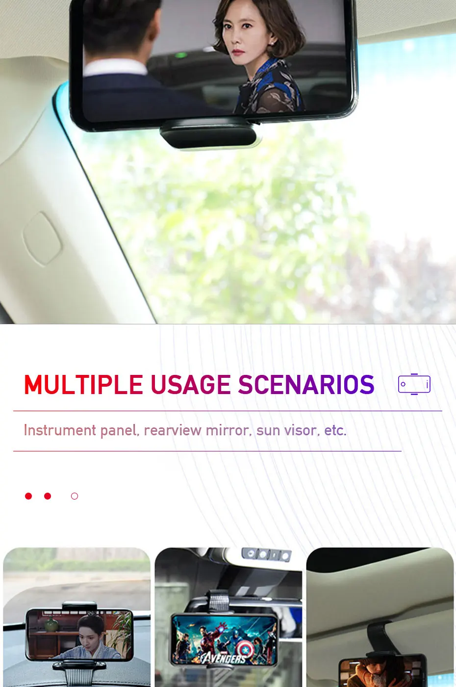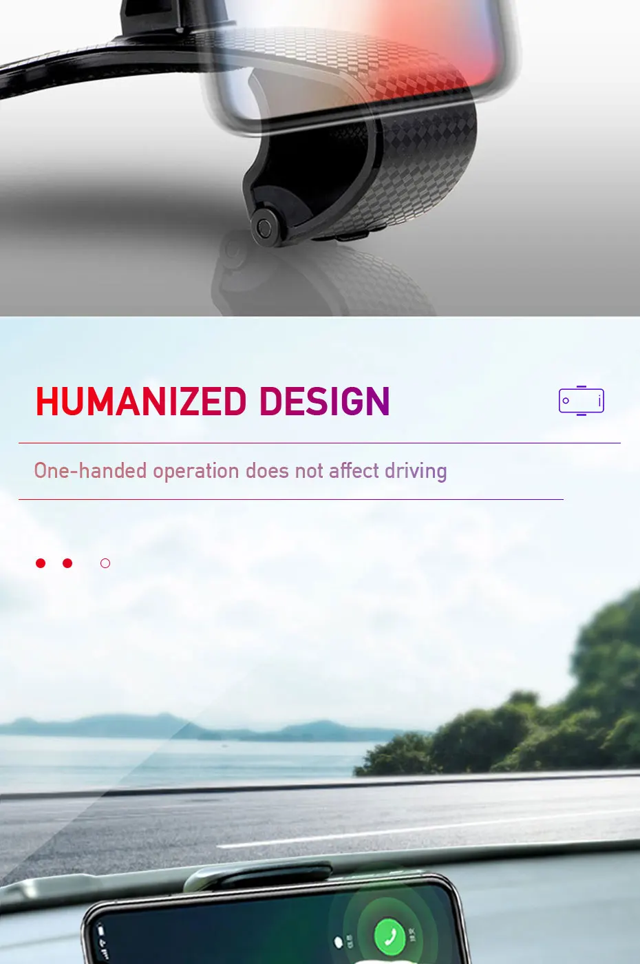1. Вращающийся на 360 градусов дизайн, не стесняйтесь отрегулировать держатель для лучшего просмотра. Вы можете наслаждаться безграничным горизонтом во время вождения в дороге.