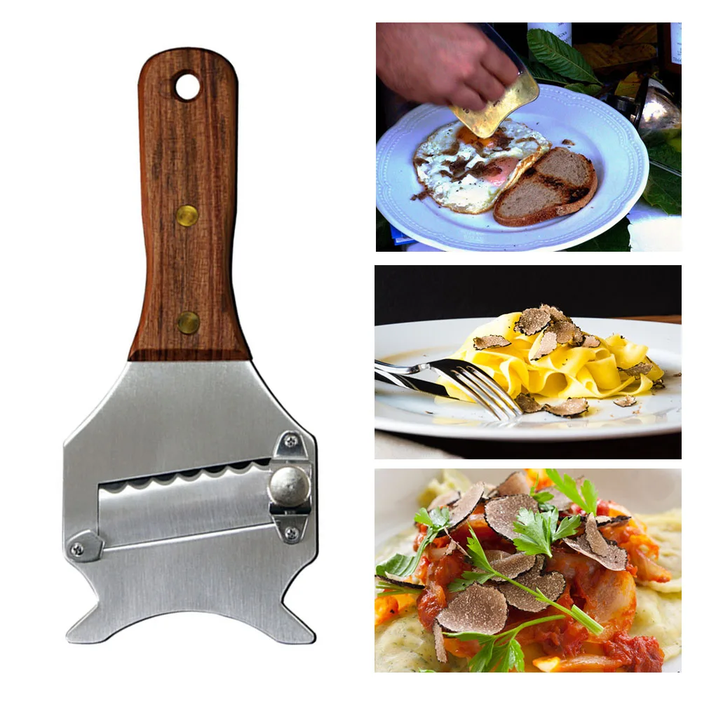 -Слайсер из нержавеющей стали может сделать нарезанные бумажные трюфели или сыры, толстые морковь или кабачки и т. Д.