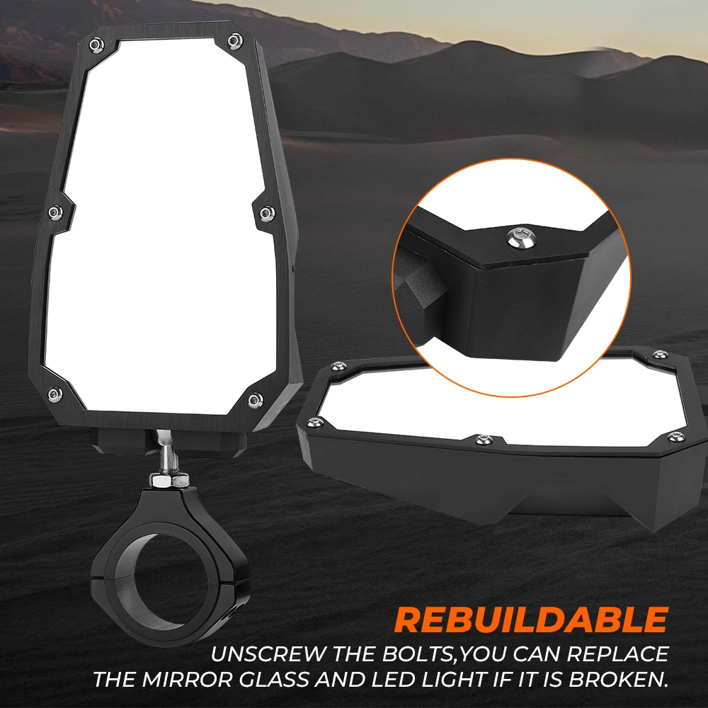【Package】UTV боковые зеркала w/светодиодный светильник приходят с красными и синими светильник кадров, вы можете самостоятельно оформить сандалии и изменить цвет зеркальный размерную сетку США самостоятельно.