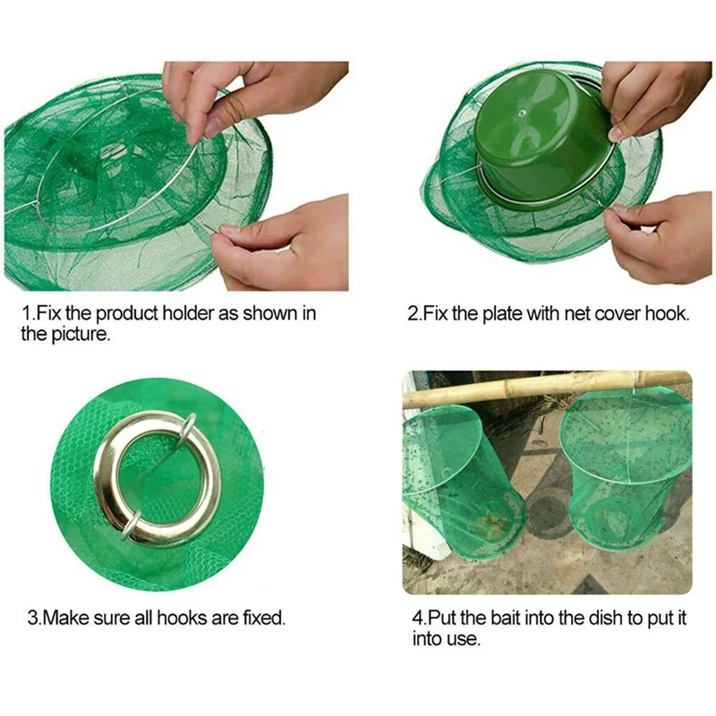 Описание: 1. Это новый тип летающего устройства с высокой эффективностью, экологичностью и безопасностью. 2. Он широко используется в парке, семейных фермах (фермерский рынок), столовых, ресторанах, бойнях, фермах, зеленых поясах, туалетах и других общественных местах. 3. Лучший способ размещения: весенний сезон, висящий на соответствующем солнечном месте, летом вешается в темном месте. 4. Из-за мух, которые любят есть рыбные продукты, рекомендуется выбирать кишки рыбы, гнилые фрукты и другие продукты, висящие на 1 метре от земли. Спецификация: Материал: железная проволока + марлевый элемент + пластик Размер: диаметр 23 см высота ловушки 32 см с приманкой горшки общая высота 40 см Материал раковины приманки: пищевой полипропилен