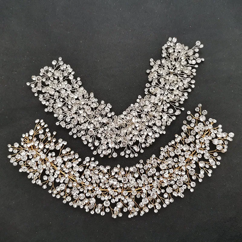 Великолепные Проводные Стразы ручной работы, жемчужины, свадебные аксессуары для волос, лоза, обручи для волос, свадебная повязка на голову, подружки невесты для женщин Материал: сплав, стразы, кристаллы, жемчуг Размер: 32 см * 7 см Случаи: свадьба, помолвка, юбилей, вечерние, повседневные