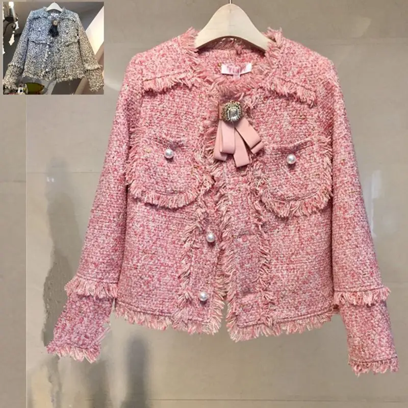 Женское пальто Новый стиль Модные однобортные темпераментные шерстяные твидовые с бахромой шерстяные короткие пальто и куртки для женщин