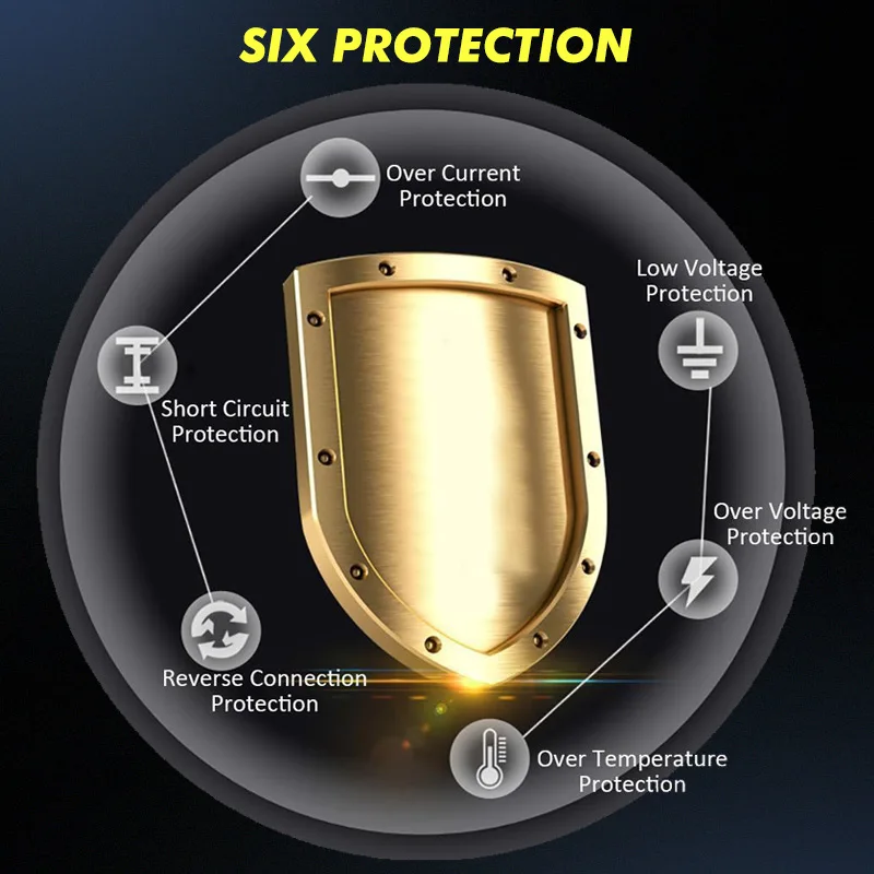 -Защита от перегрева, перезаряда, короткого замыкания и обратной полярности