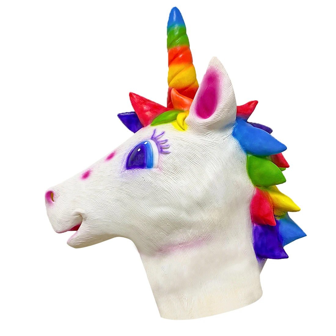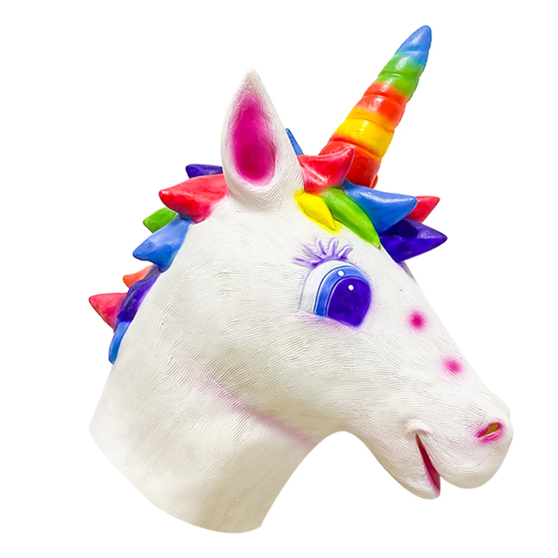 Латексная маска в виде животного радуги единорога, головы лошади, маскарадный костюм на Хэллоуин, вечерние маскарадные маски, смешной реквизит для взрослых детей