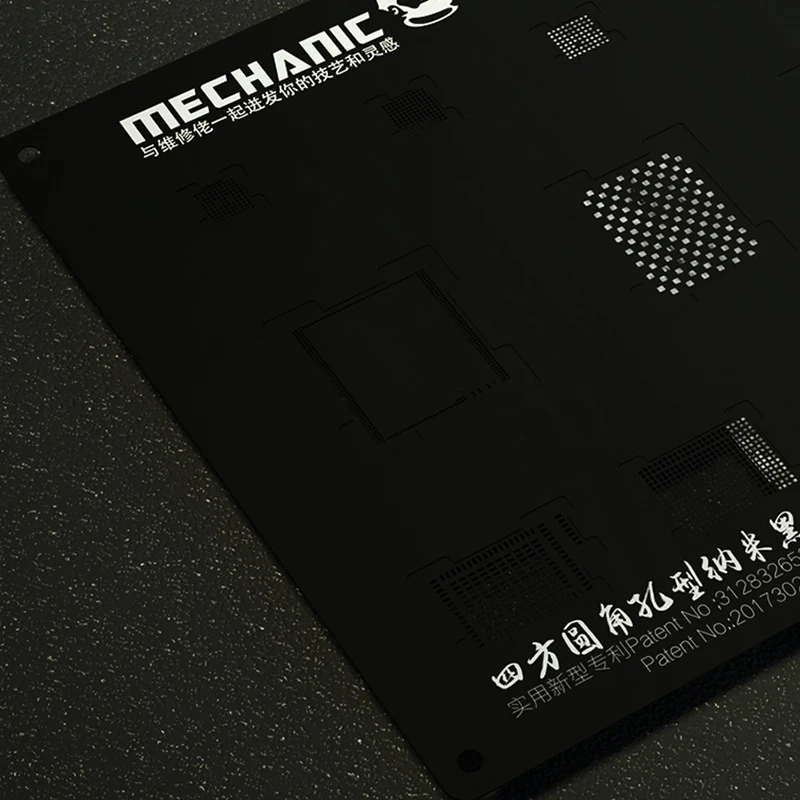 1: устойчивость к высоким температурам может использоваться в 100000 раз 2:3D дизайн паза позволяет трафарету быстро выравниваться с тонированием IC. 3: конструкция с квадратными отверстиями облегчает вынос образованных шариков для припоя. 4: Этот 3D Трафарет прост в использовании, независимо от того, являетесь ли вы новым или экспертом. 5: высокий уровень успеха при посадке олова, Паяльные шарики могут быть сформированы после того, как вы будете опытными. 5: квадратное закругленное отверстие 6: высокая термостойкость до 700 °C