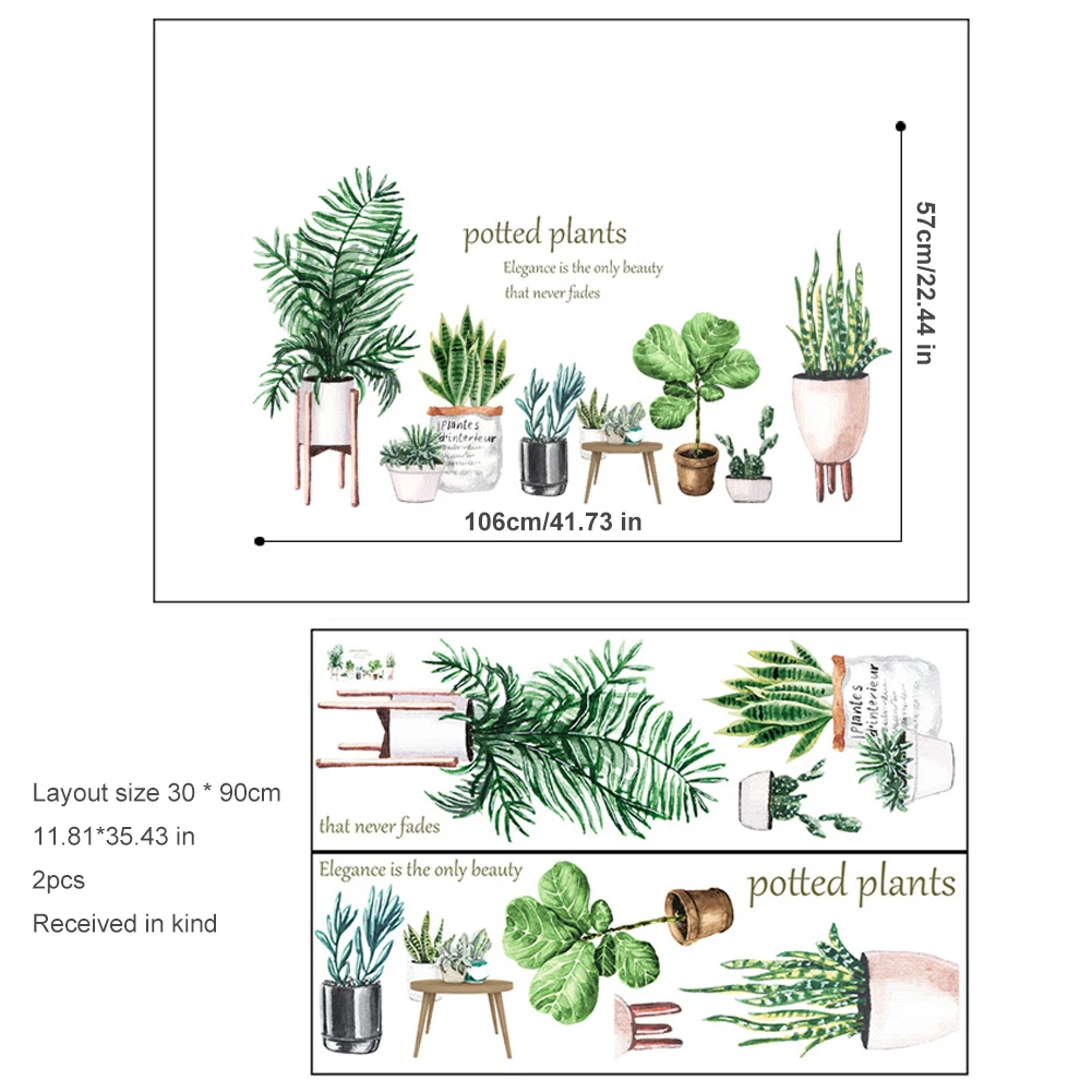 Большие настенные наклейки в горшке кактус с сетчатыми листьями
