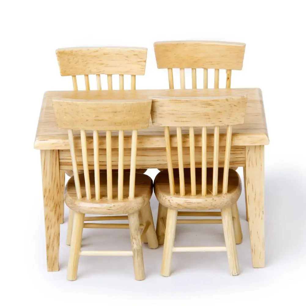 Этот набор модельных стульев для обеденного стола хорошо разработан и создан для ваших детей, чтобы иметь лучший компаньон для дома в течение всего дня. Имитация большого стола с четырьмя стульями, каждый из которых имеет полый на спине очень стильный и модный. Этот набор моделей стола-отличная миниатюрная мебель для вашей кукольной гостиной и отличное украшение для вашей модели интерьера.