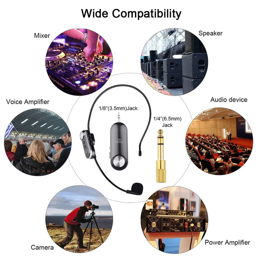 K380R перезаряжаемый беспроводной гарнитура UHF микрофон Mic приемник адаптер Комплект