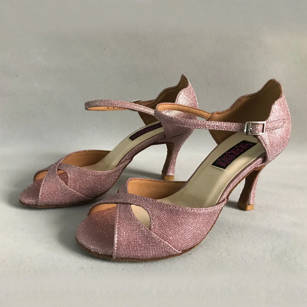 1.Upper : Light pink gold Glitter. Customer can change to other colour ,see below colour chart. 2.Lining : Non Woven 3.Outsole : Suede Soft Outsole 5.Size : USA Size . 6.Heel : 7.5cm flare heel . Customer can change the heel size, see below heel style.