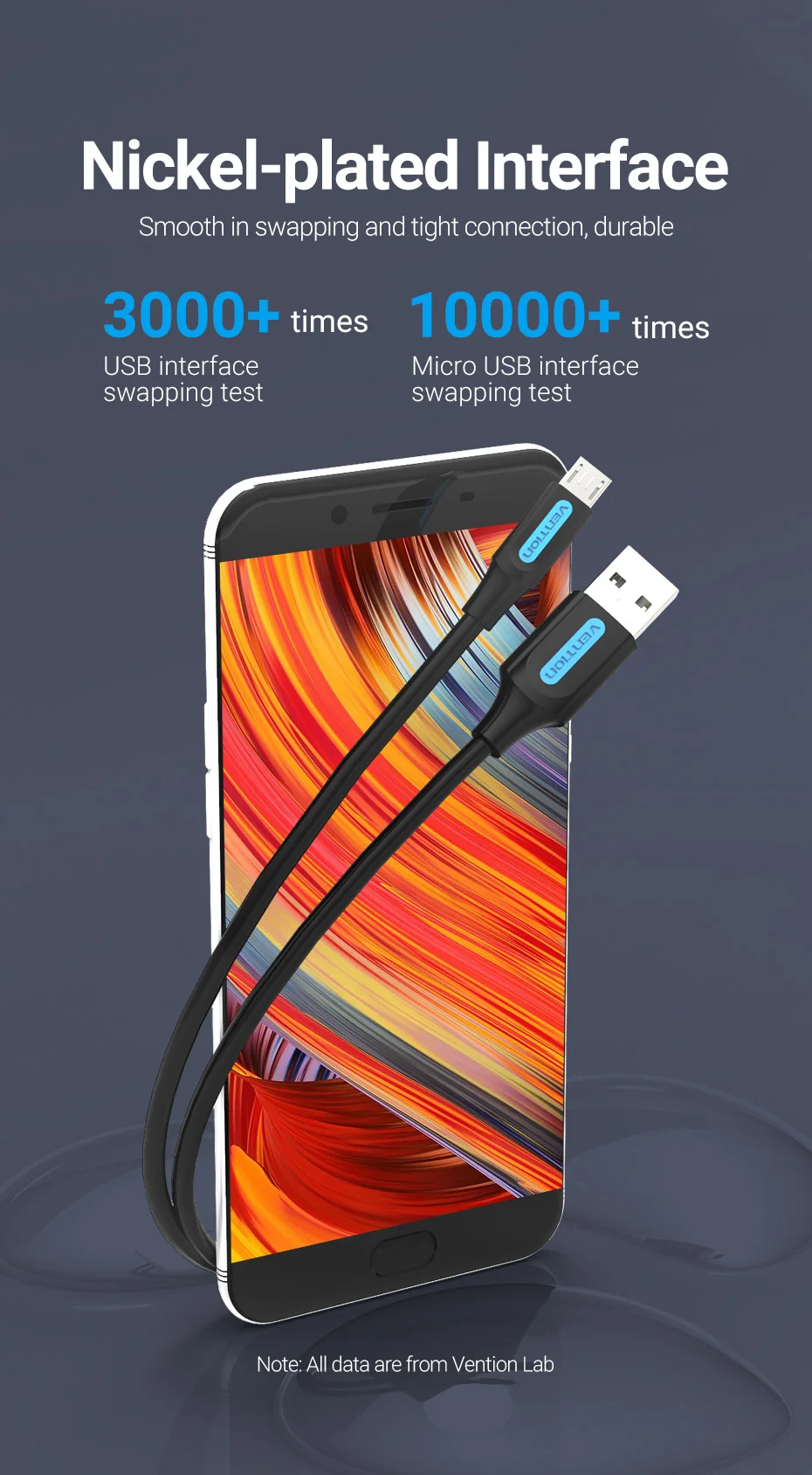 Fast charging for android phone & tablets. 120 minutes full of Honor 8X , 120 minutes full of Xiaomi Play. Fast charge and fast transfer simultaneously. Nickel-plated interface make smooth in swapping and tight connection, durable.