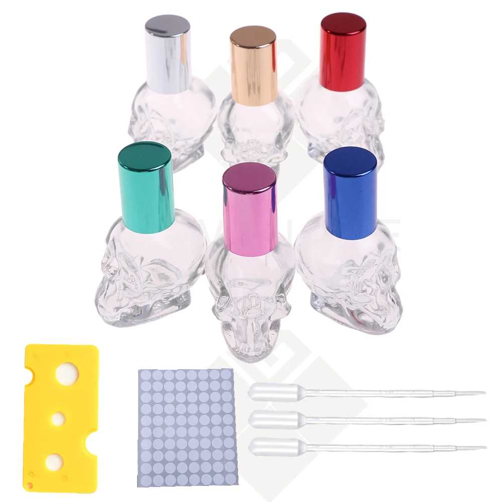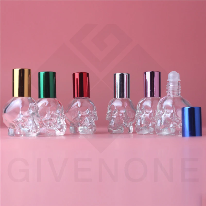 10 шт./лот 8 мл форма черепа пустой стеклянный рулон на флаконе для духов пустые флаконы для духов со стеклянным шаром многоразовые держатели для бутылок