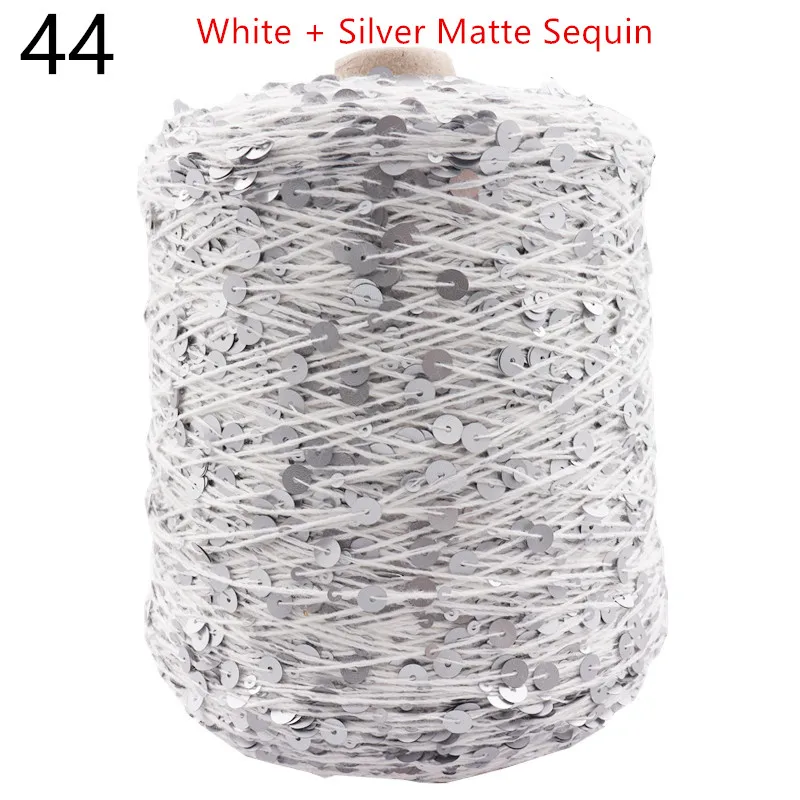 1. Вес: 200 г/шар./560 м. (Без катушки) 2. Материал: 100% хлопок. 6 мм + 3 мм блестки. 3. Размер блесток: 6 мм + 3 мм.