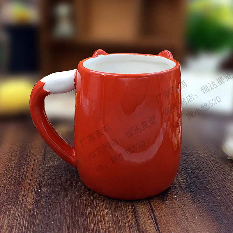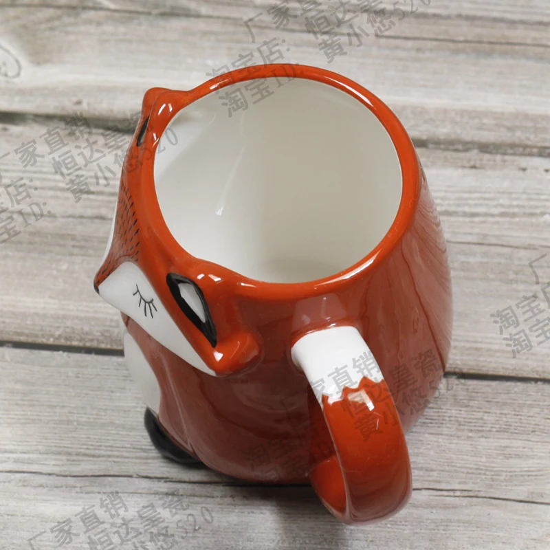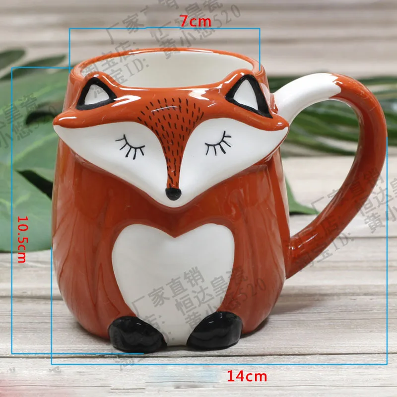 3D кружка с животными, керамическая креативная Милая кофейная чашка с лисой, большая емкость, ручная роспись, мультяшная керамическая кружка для завтрака, молочные кружки