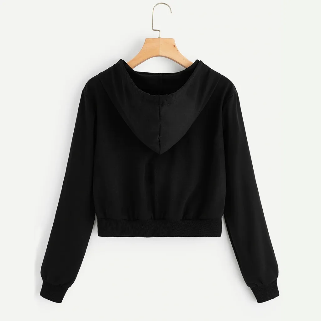Женская Повседневная Однотонная рубашка с длинным рукавом и карманом на молнии, толстовка с капюшоном, топы