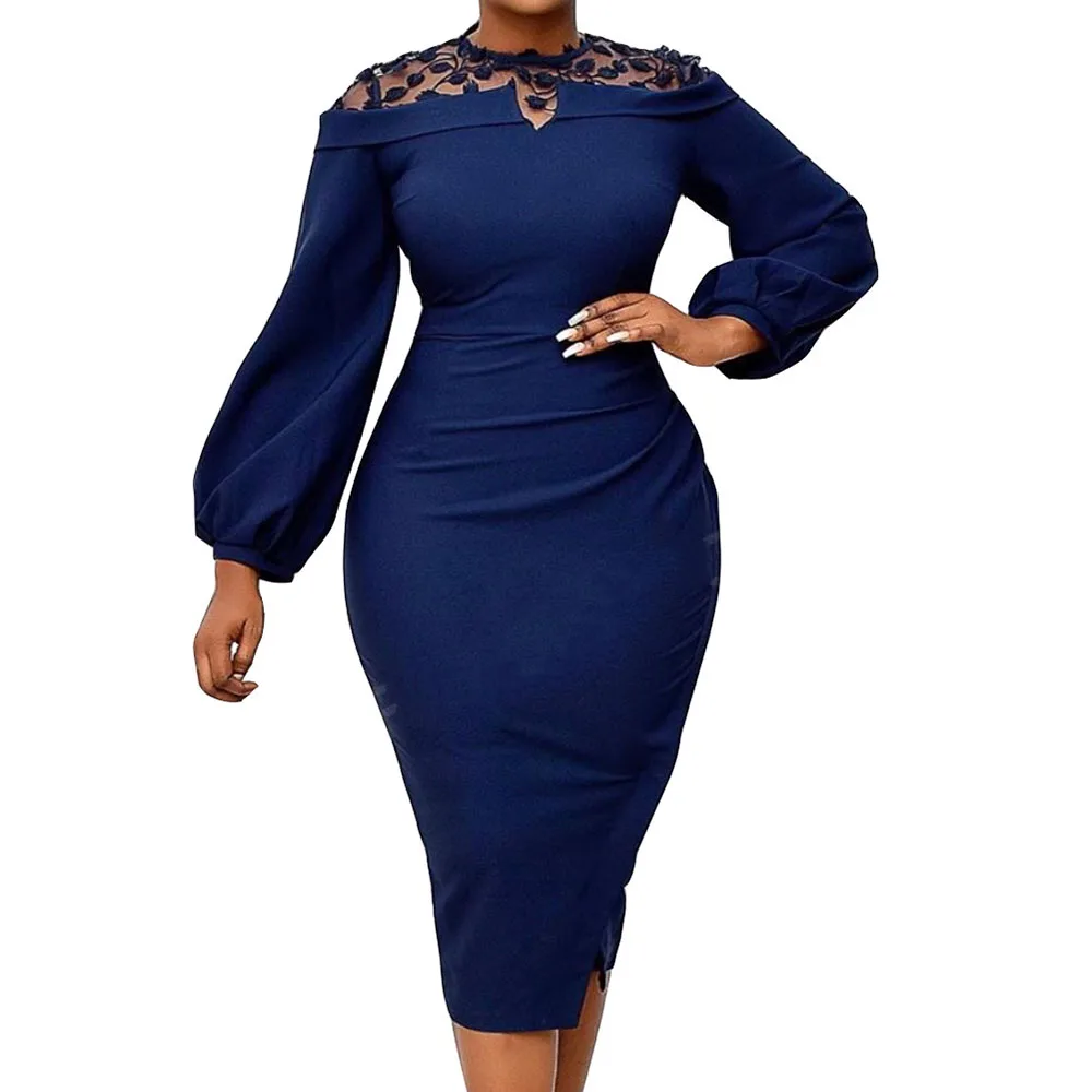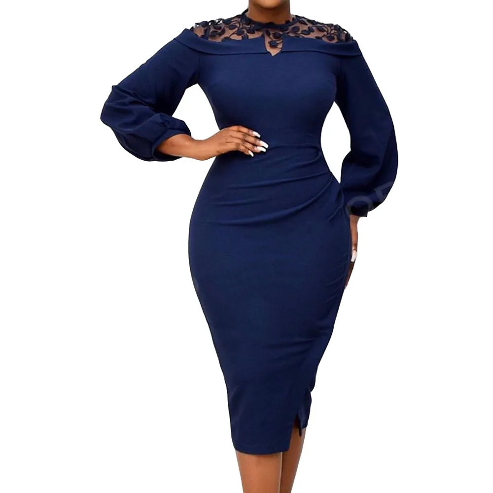 Женское лоскутное платье с пышными рукавами, осень 2020, облегающие платья, элегантные офисные женские платья миди для работы, femme vestiods размера плюс 4xl