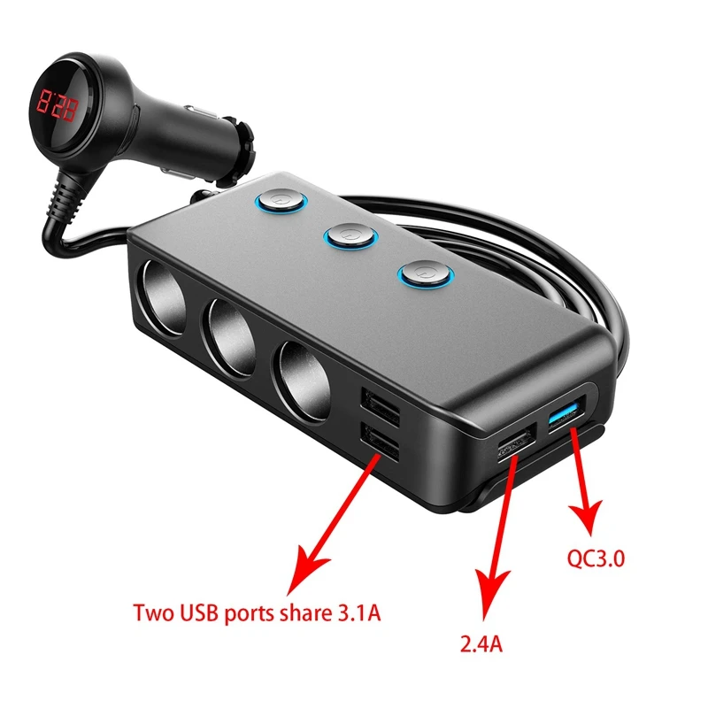 Расширьте свой автомобильный прикуриватель до 3 гнезд. Умный и совместим со всеми устройствами с разъемами сигарет. Обеспечивает полную мощность до 120 Вт (с максимальным общим током 6,8а).