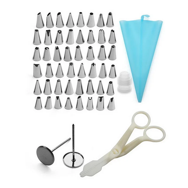 Набор 4: 54 в 1: 48 наконечников для глазури, 2 муфты, 1 кондитерский мешок из ТПУ, 2 цветочных ногтя, 1 подъемник для цветов