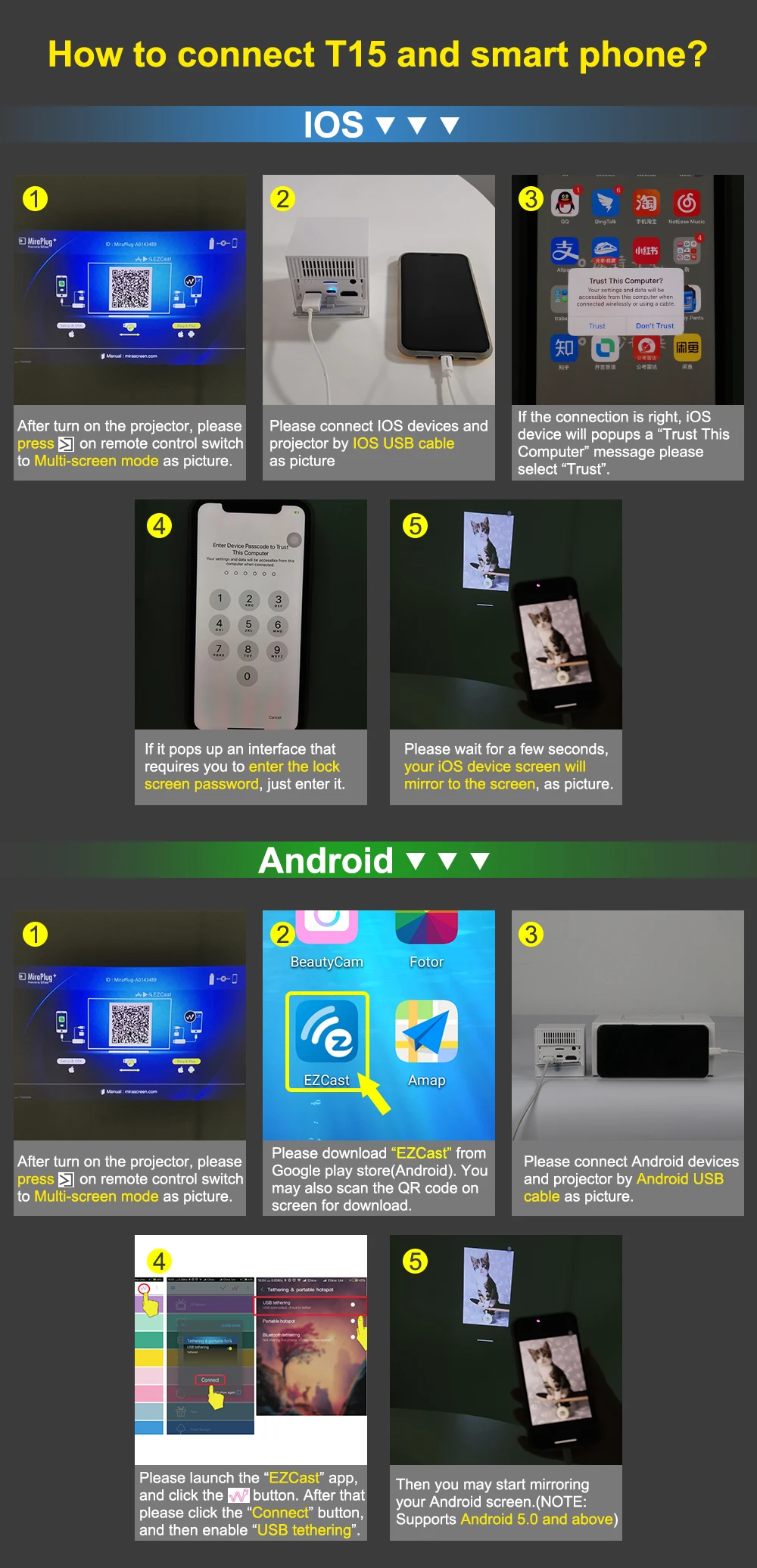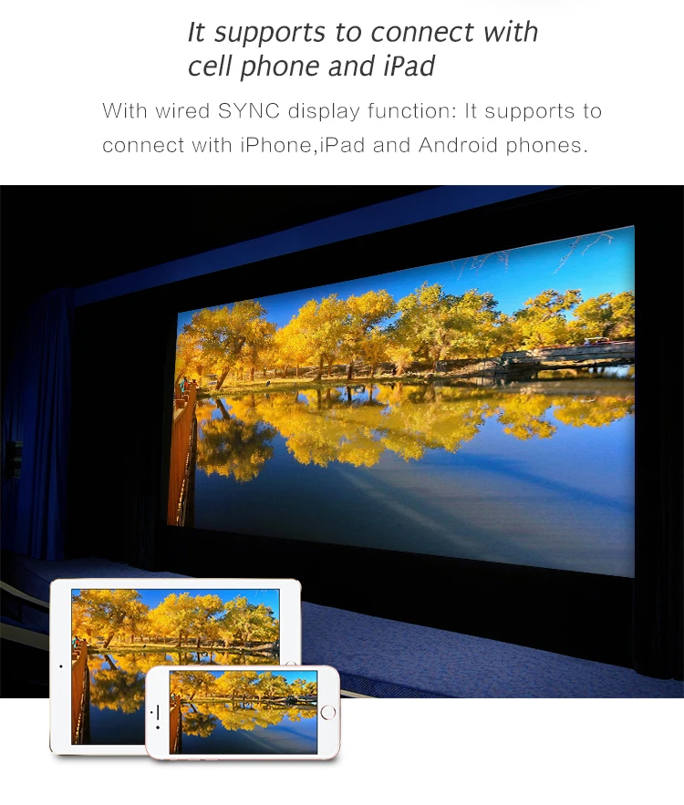 Многоэкранное взаимодействие: Просто подключите свои мобильные устройства к usb-кабелю для передачи данных, чтобы наслаждаться контентом со смартфона/планшета в любом месте