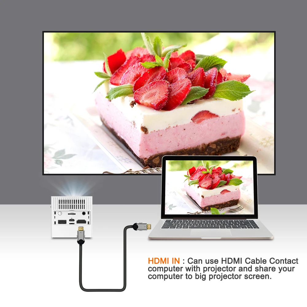 HDMI IN: можно использовать кабель HDMI, связаться с компьютером с проектором и поделиться своим компьютером с большим экраном проектора.