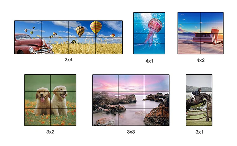 Устройство для сращивания Видео плеера имеет функцию сращивания видео. Вы можете выбрать внутренний источник сигнала проигрывателя или внешний источник сигнала HDMI для сращивания. Проигрыватель поддерживает установку прямого эфира, по требованию, игр, просмотра веб-страниц, музыки и другого программного обеспечения. Он может отображать групповые фотографии высокой четкости с различными эффектами сращивания, идеально формируя многоэкранное Сращивание. Он прост в эксплуатации без подключения и воспроизведения без программного обеспечения управления и широко используется в рекламных экранах, ресторанах, обучении и других местах.