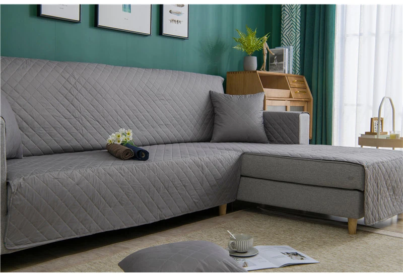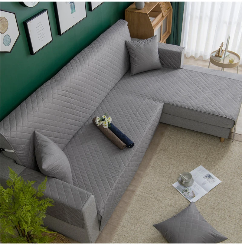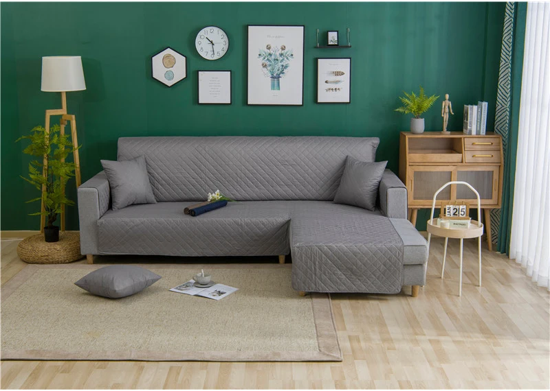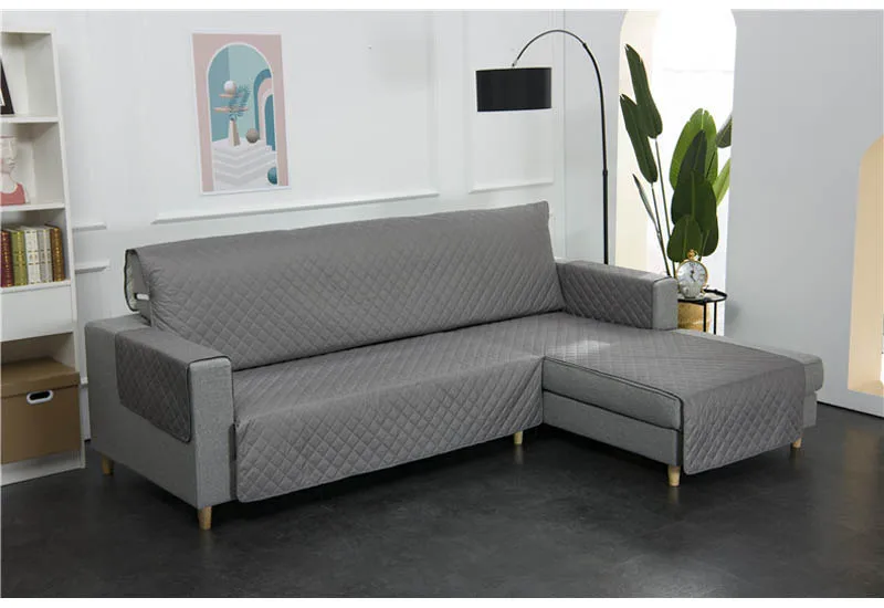 L-образный чехол для дивана для гостиной, угловые чехлы для диванов, Нескользящие стеганые цельнокроеные чехлы для диванов, защитный чехол для мебели, серый, черный