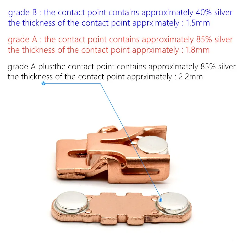 Класс B: точка контакта содержит примерно 40% серебра. Толщина точки контакта составляет примерно: 1,5 мм класс А: точка контакта содержит примерно 85% серебра Толщина контактной точки составляет приблизительно: 1,8 ММ Класс А плюс: контактная точка содержит около 85% серебра толщина контактной точки составляет приблизительно: 2,2 мм