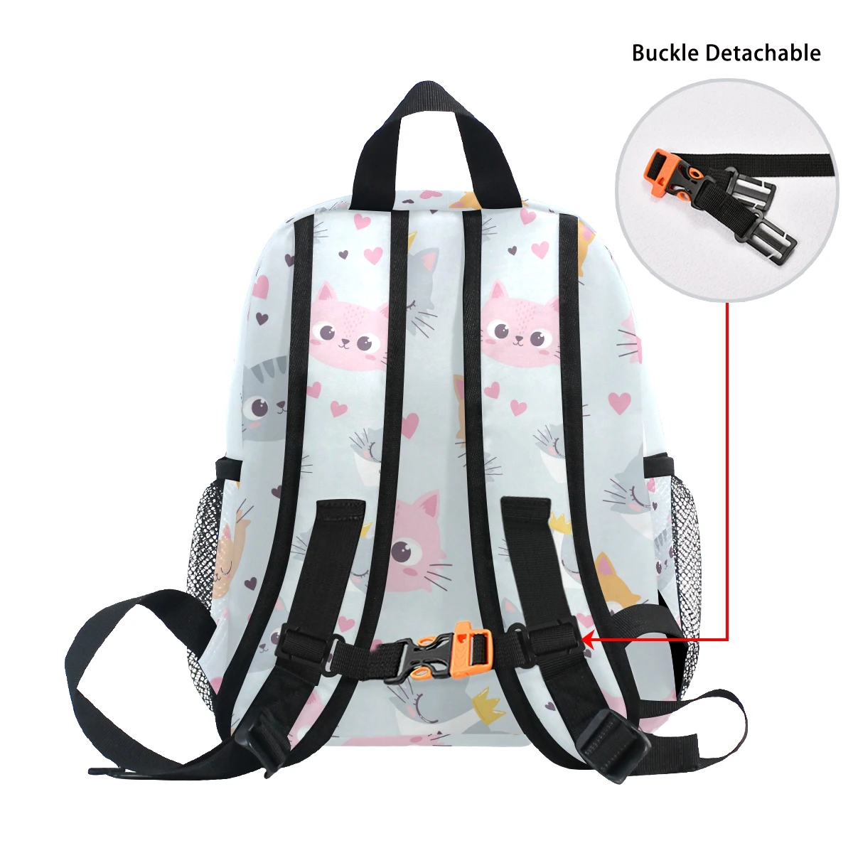 Shoulder bags (children) all-inclusive printing not machine washable Material: Twill + Braid + Mesh Pocket Dimensions: 10x4x12 in One main pocket, one front pocket, one hidden zipper compartment, two water bottle pockets The small and cute appearance is suitable for 3-8 children to travel on their shoulders and shoulders. It can accommodate children's personal belongings and let them learn to manage their own belongings. A buckle on the front chest is used to prevent children's shoulder straps from sliding off. There is a whistle on the buckle. Children can blow it in an emergency and attract the attention of others. (Japanese buckle, removable buckle) Note:1.All dimensions are measured by hand, there may be 0-3 cm deviations; 2.Due to the difference between different monitors, the picture may not reflect the actual color of the item. Thank you! There is a little smell from the new bag normally, it'll be dispersed through air.