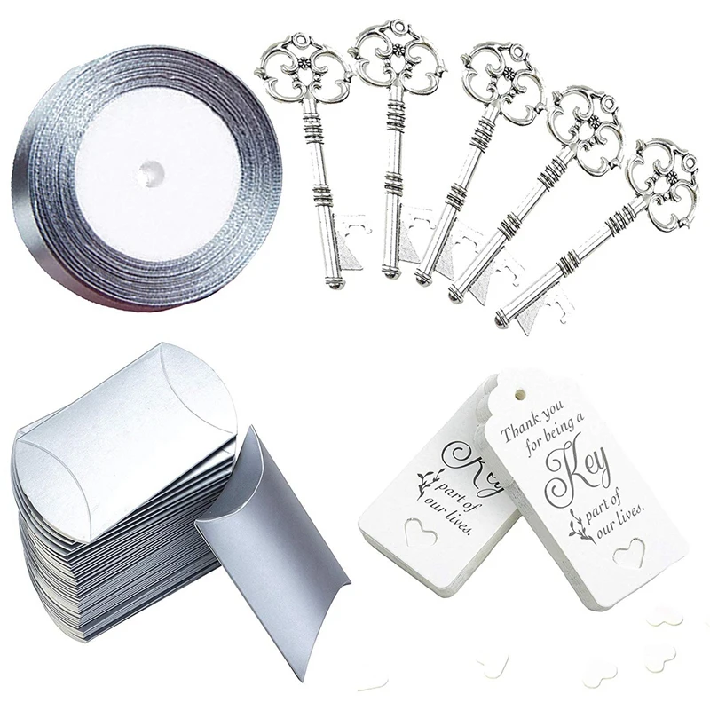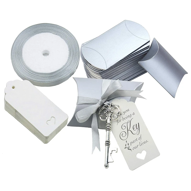 Все в одном наборе: креативная коробка для конфет, полезные Открывашки для ключей, элегантная шелковая лента и подарочные бирки, Свадебный Сувенирный набор, красивое украшение для вашей винтажной/деревенской свадьбы.