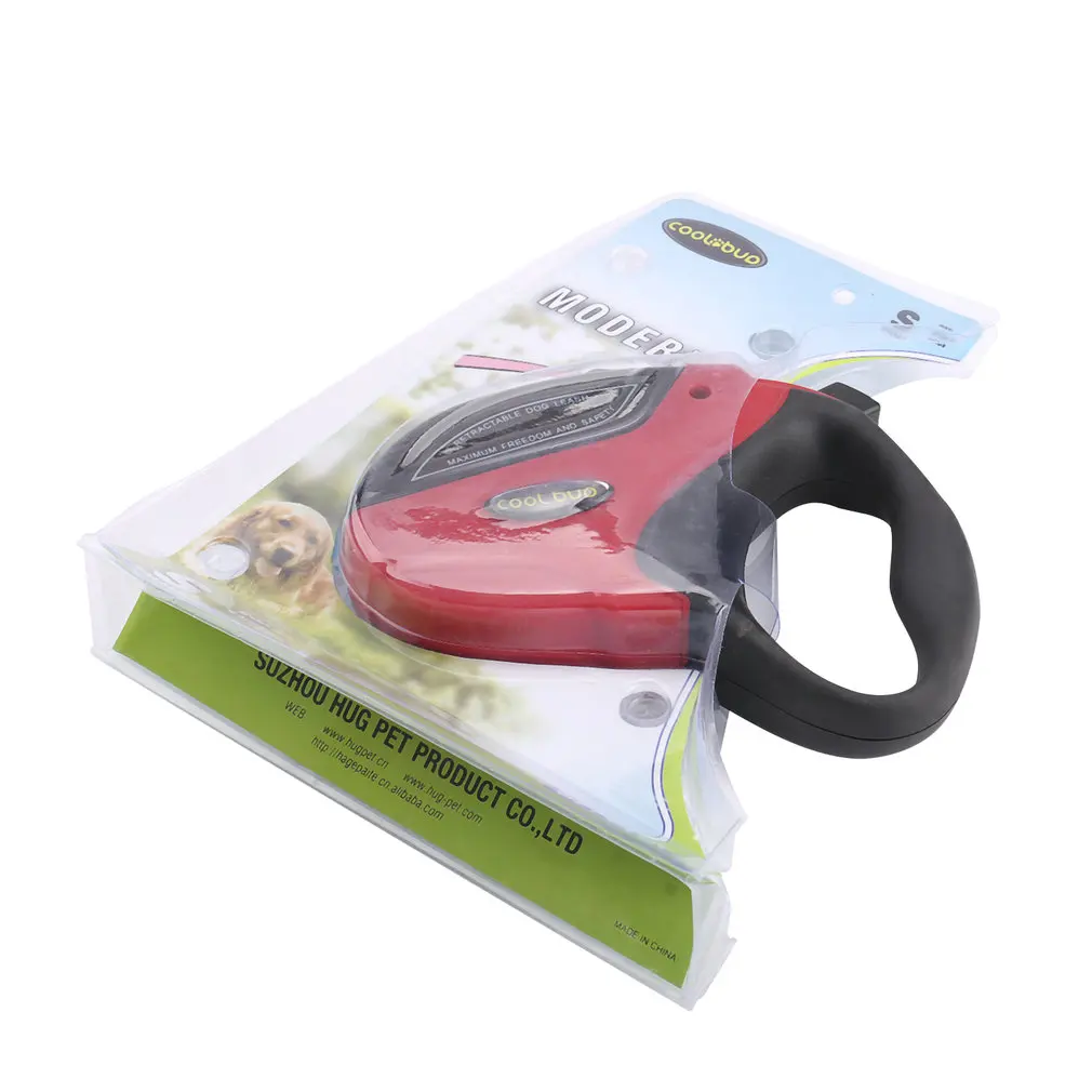 Этот поводок имеет кнопочный тормоз и пружинный возврат в безопасное и быстрое втягивание поводка