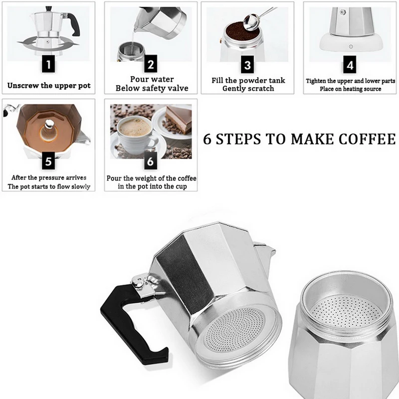 Алюминиевая кофеварка, прочный кофейник Moka Cafeteira Expresso Percolator, практичный кофейник Moka 50/100/150/300/450/600 мл