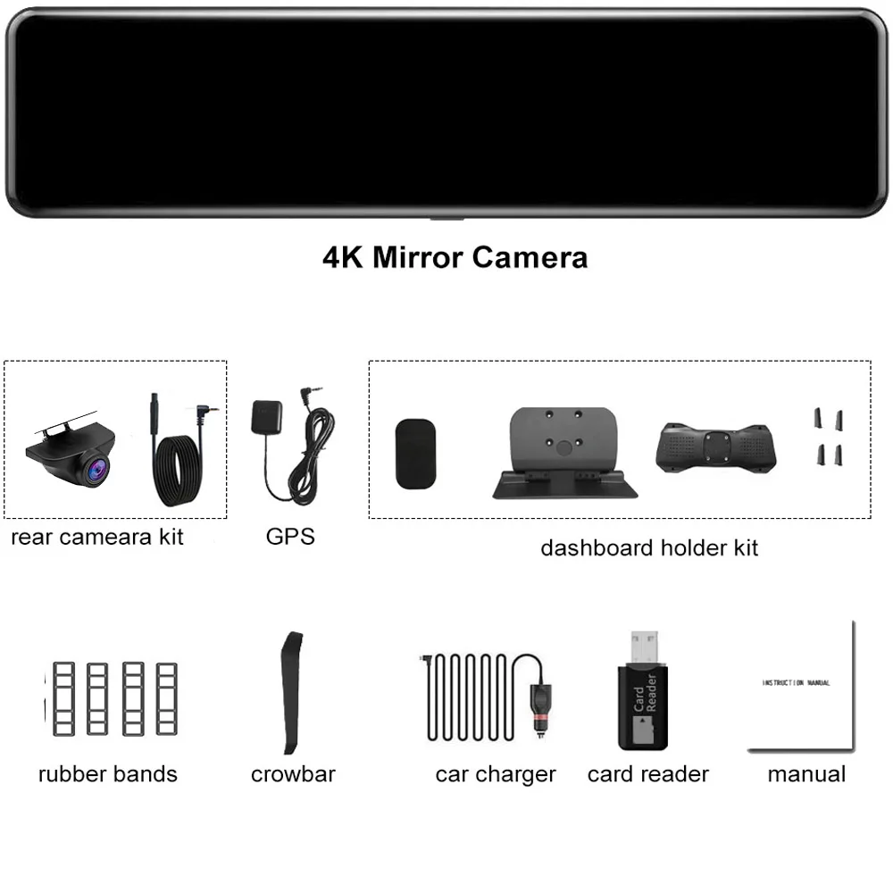 D688 зеркало, GPS антенна, 1080P задняя камера + задний кабель, автомобильное зарядное устройство, руководство пользователя, резиновые полосы, Коронка, кардридер, держатель приборной панели, Соединительная пластина, нескользящий коврик, винты
