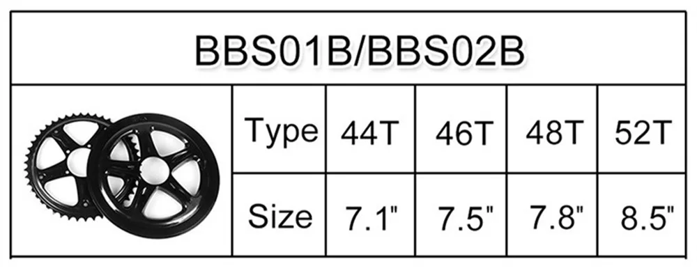 2. Для типа передней звездочки вы можете выбрать 44T (по умолчанию), 46T, 48T или 52T.