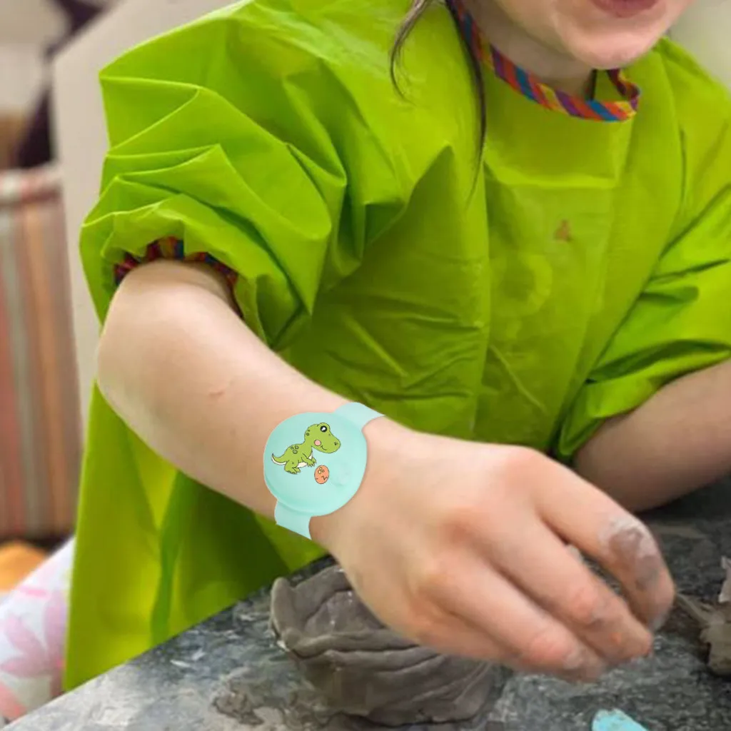 Если это бутылка с широким горлышком дезинфицирующего средства для рук, вставьте дезинфицирующее средство для рук в браслет с острым носиком. Сожмите его во время использования.
