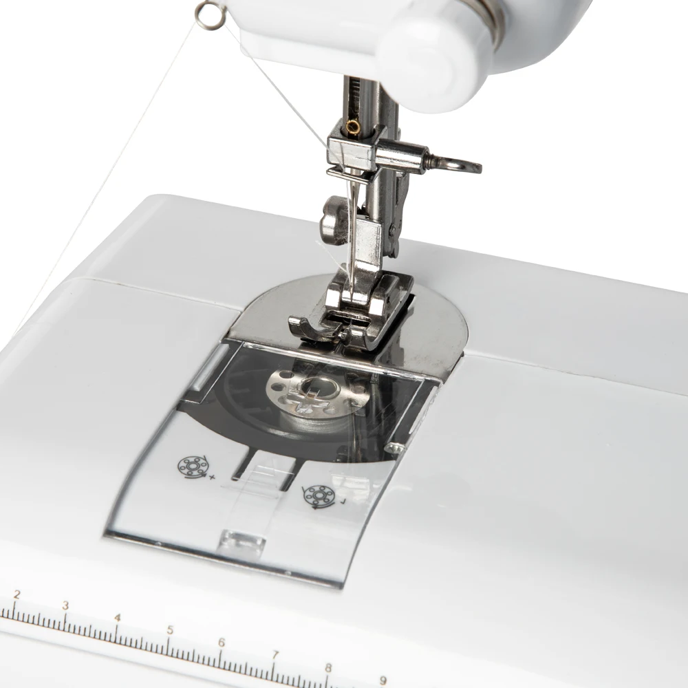 Комплект поставкиШвейная машина, Шпуля, Иглы, Инструмент для заправки нити, Ножной привод, Сетевой блок питания, Гарантийный талон, Руководство по эксплуатации