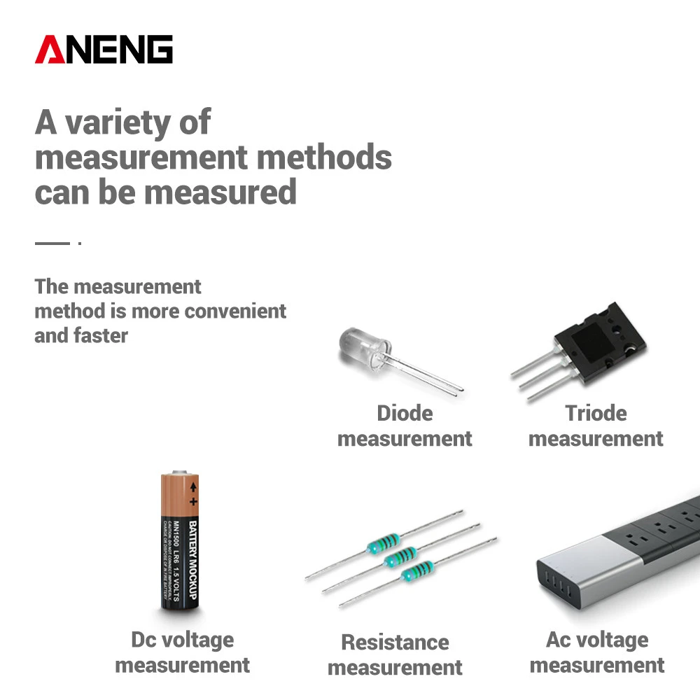 Широкое использование-автоматическое измерение. Точно измеряет, например, напряжение и ток переменного/постоянного тока, сопротивление, непрерывность, диод, емкость, частоту/рабочий цикл, температуру, транзистор и испытание на непрерывность с помощью аккумулятора.