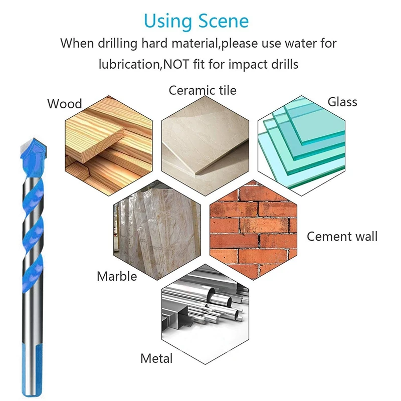 Широкое применение: отлично подходит для большинства материалов при монтаже интерьера, металла, стекла, керамической плитки, дерева, керамики, камня, бетона, кирпича и т. д. (при сверлении твердого материала, используйте воду для смазки)