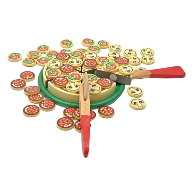 Деревянная сумка Vitality: Наслаждайтесь 54 деревянными продовольственными точками для забавного деревянного игрушечного набора для детской кухни, самоклеящаяся этикетка для 6 деревянных кусочков пиццы.