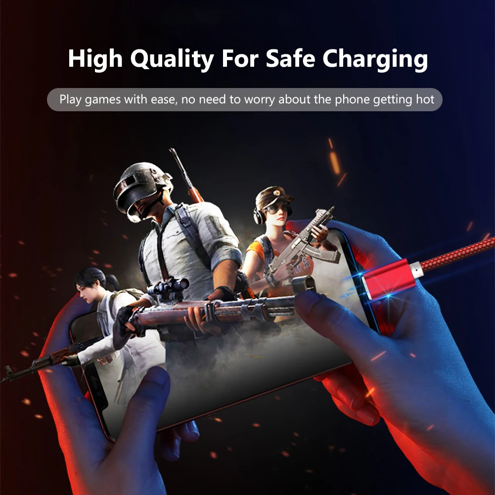 Быстрая зарядка и синхронизация данных, изготовлено с высокоуровневыми проводами с низким сопротивлением, которые позволяют заряжать наш кабель быстрее, чем обычные usb-кабели.