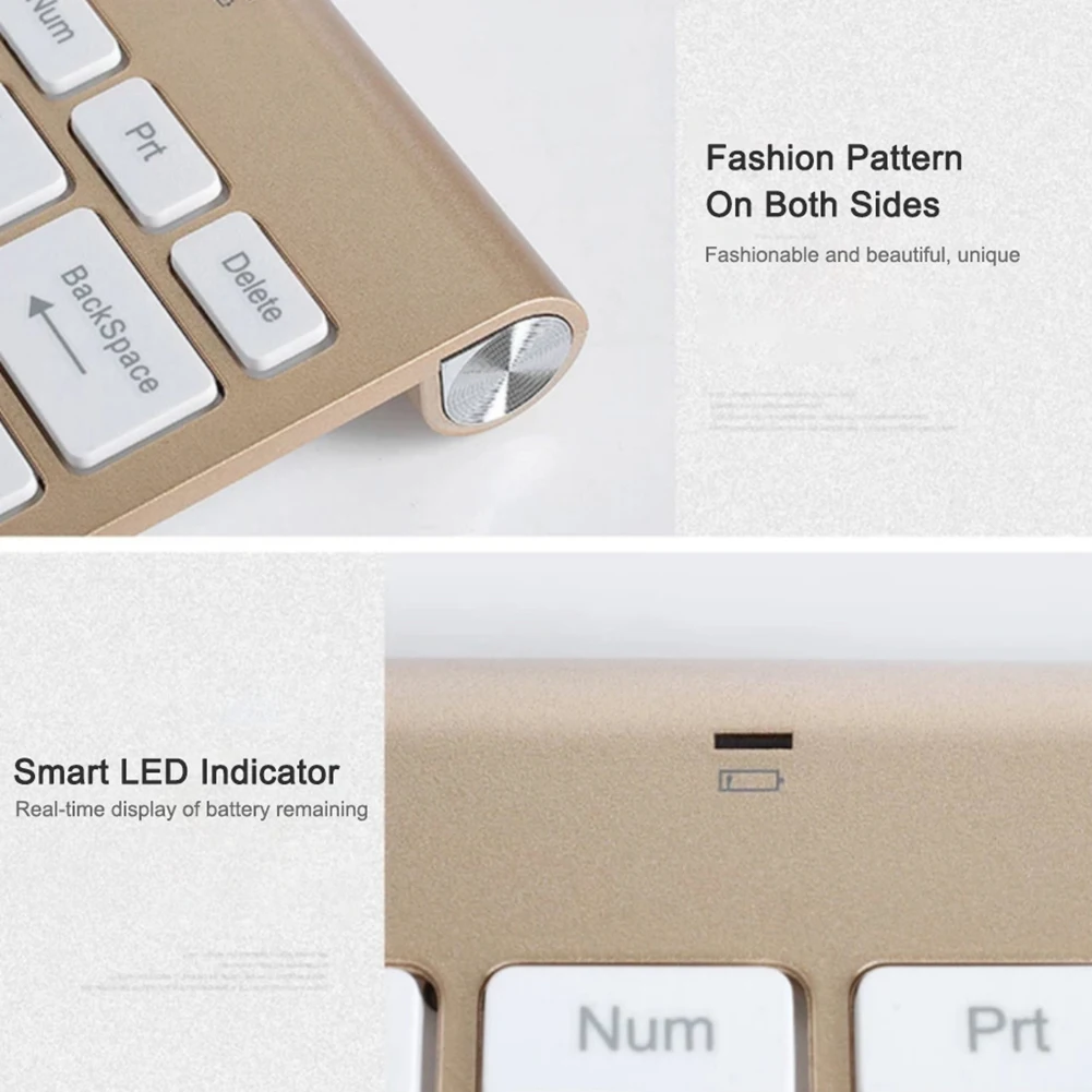 -Тонкая беспроводная клавиатура и мини-оптическая мышь с крошечным usb-приемником.