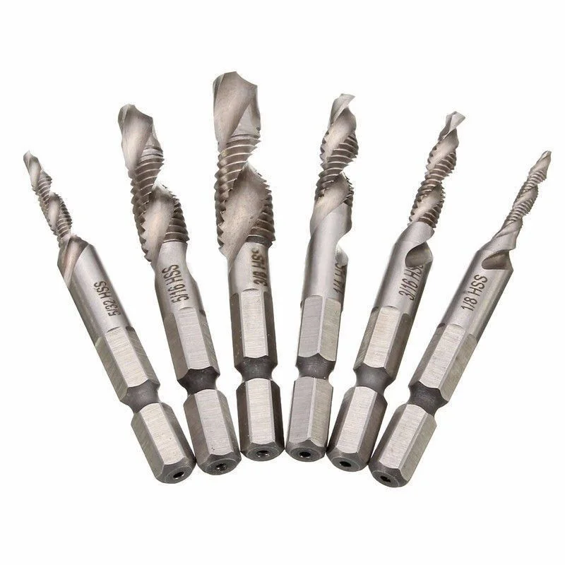 * 6 шт 1/4 "шестигранный хвостовик спиральные краны с винтовой резьбой сверла набор используется для сверления дерева, алюминиевой пластины, железа и других мягких металлов.
