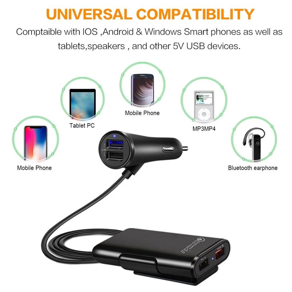Автомобильное зарядное устройство 4U для заднего сиденья легкое и удобное для переноски во время путешествий на машине.