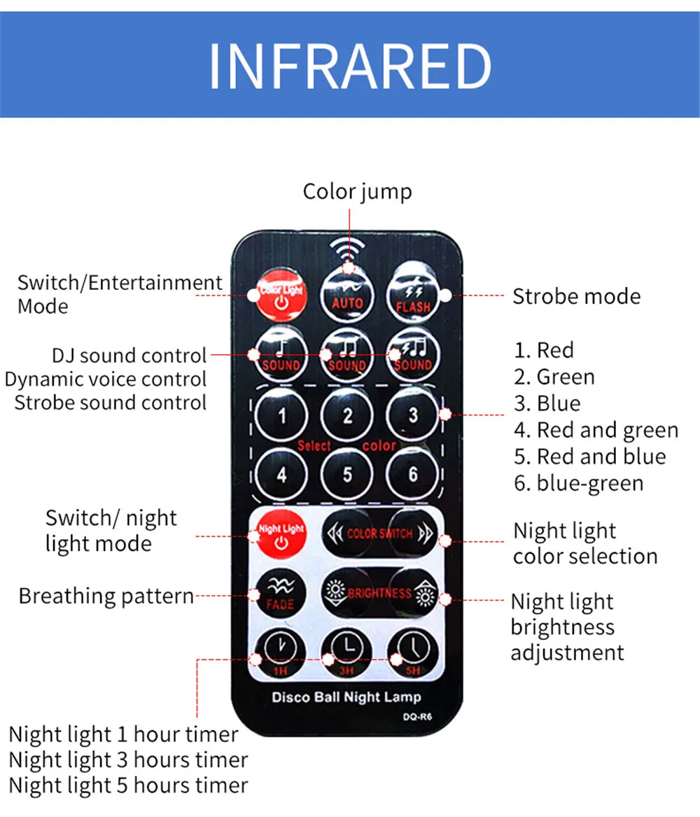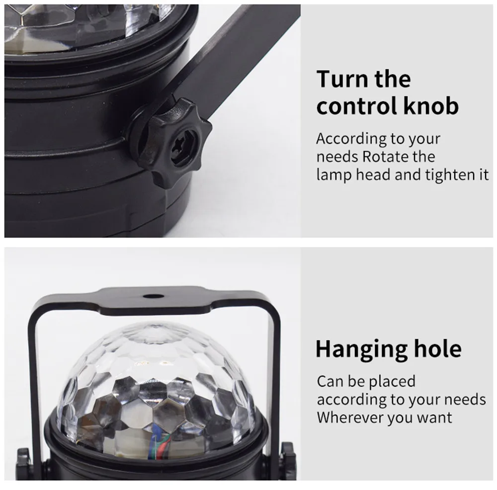 【Feature】 С ритмом музыки светильник светит. Привлекают внимание людей. Эффект стробоскопа, есть три изменения цвета: красный, зеленый и синий. Светильник находится на стене, эффект как стеклянный шар, очень яркий и мощный. Гарантия высокого качества, безопасная и надежная. Длительный срок службы и отличная стабильность. Небольшой внешний вид. Подходит для дискотеки, танцевального зала, КТВ, бара, сцены, клуба, вечерние и т. д. 【Specification:】 Название продукта: Крутой фонарь двойного назначения Мощность питания: 100-240 В пер. тока, 50/ 60hz6 Режим управления питанием: самоходный, пульт дистанционного управления, голосовое управление Светильник источника режим: развлечения/Ночной светильник Инж Светильник: RGB Три цвета Размер продукта: 8.5x8.5x10cm 【Packing list】 1 * RGB Хрустальный сценический светильник 1 * Источник питания (опционально) 1 * пульт дистанционного управления (не включая батарею)